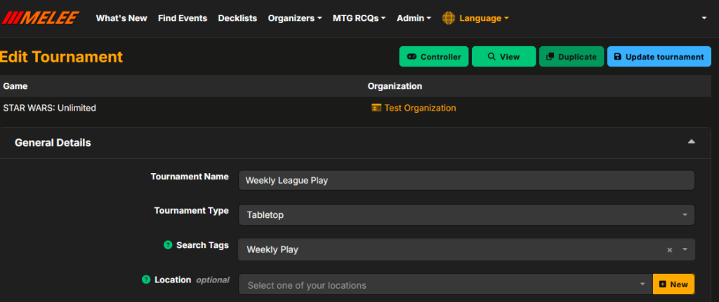 - Location: Make sure you add your store’s location to the original, ensuring all your clones are easily found by players on Melee’s Find Events page.